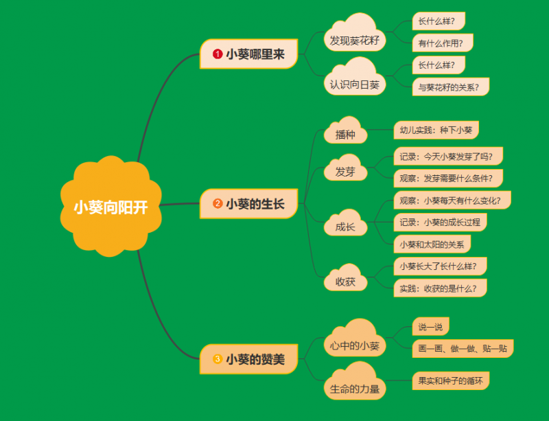 第二部分是照顾黄瓜苗。可以请小朋友说一说、画一画应该如何照顾黄瓜苗,并且运用到实践中。到了黄瓜爬藤的时候,也可以请小朋友说一说要怎么办?怎么样搭棚?搭棚需要什么工具?设计一下黄瓜棚的图纸,并且进行相应的实践活动。 第三部分是收获黄瓜。黄瓜收获的时候,可以调动幼儿多感官来了解黄瓜的外形,味道等。对于收获的黄瓜也可以展开各种与黄瓜有关的美食活动、拼盘活动、游戏等。 ⑥小3班: