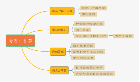 在等待番茄成长的过程中,我们也会陆续向小朋友推荐、分享各种有趣的活动,比如在番茄“初”印象中,以绘本和实物的两者共同引导幼儿感知番茄的大小、触觉、味道等;其次是趣味番茄活动中也增添了科学小实验游戏和手指游戏,绘画手工等加强对本次资源活动的开展,最后的美食分享篇可以是在种植成熟前后随机开展。