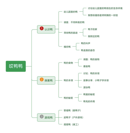 结合幼儿园中现有的具象资源:鸭,并联系到班级幼儿的探索兴趣。我们可以对鸭这一资源进行由浅入深的农味生态实践探索活动。从认识鸭的特点、生活习性、叫声、姿态,从而深入到探索鸭,分别从鸭的食物、鸭的本领、鸭子身上的秘密进一步的挖掘,最后延伸到游戏鸭,运用鸭这一资源进行有趣的活动和游戏。 ④中2班: